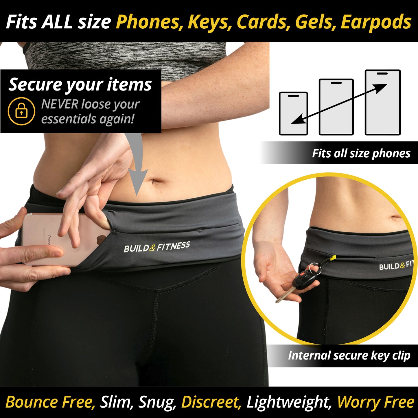 Bundle Set - Black & Grey, Classic Running Belt - Build & Fitness - UK