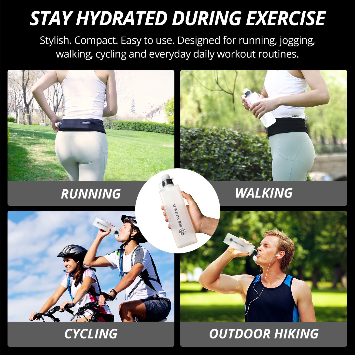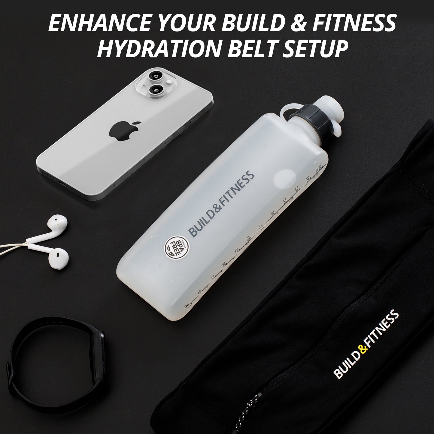 Hydration Set - Black Classic Running Belt & Curved Water Bottle - Build & Fitness®