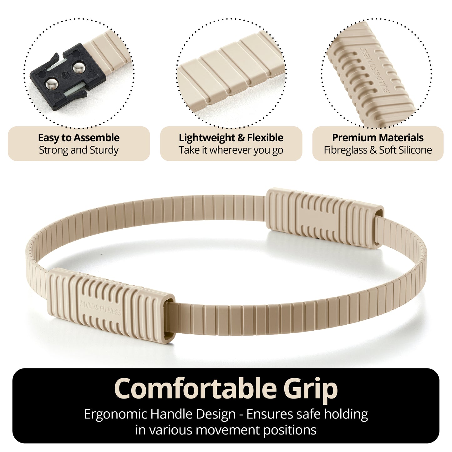 For Toning Thighs, Core, and Arms – Lightweight, Durable Silicone & Fiberglass Construction. Ideal for home, office, or studio workouts and fits easily in gym bags or luggage. Perfect for pilates, yoga, fitness on the go.