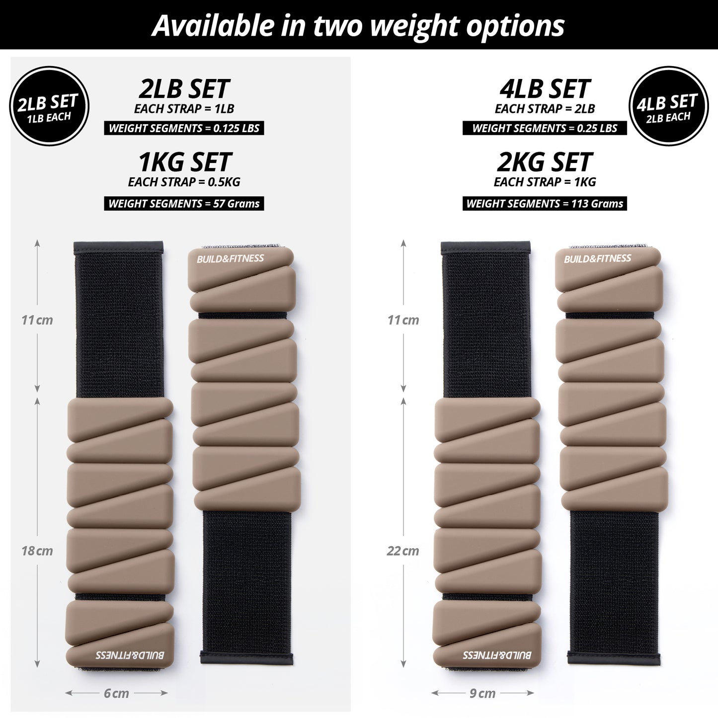 WHAT YOU GET - Each set includes two weighted straps. 1 kg set (2 x 0.5 kg straps) or 2 kg set (2 x 1 kg straps). They come in their own zip case so you can easily pack into your gym bag. Also Satisfaction Guarantee with 5 star customer care.