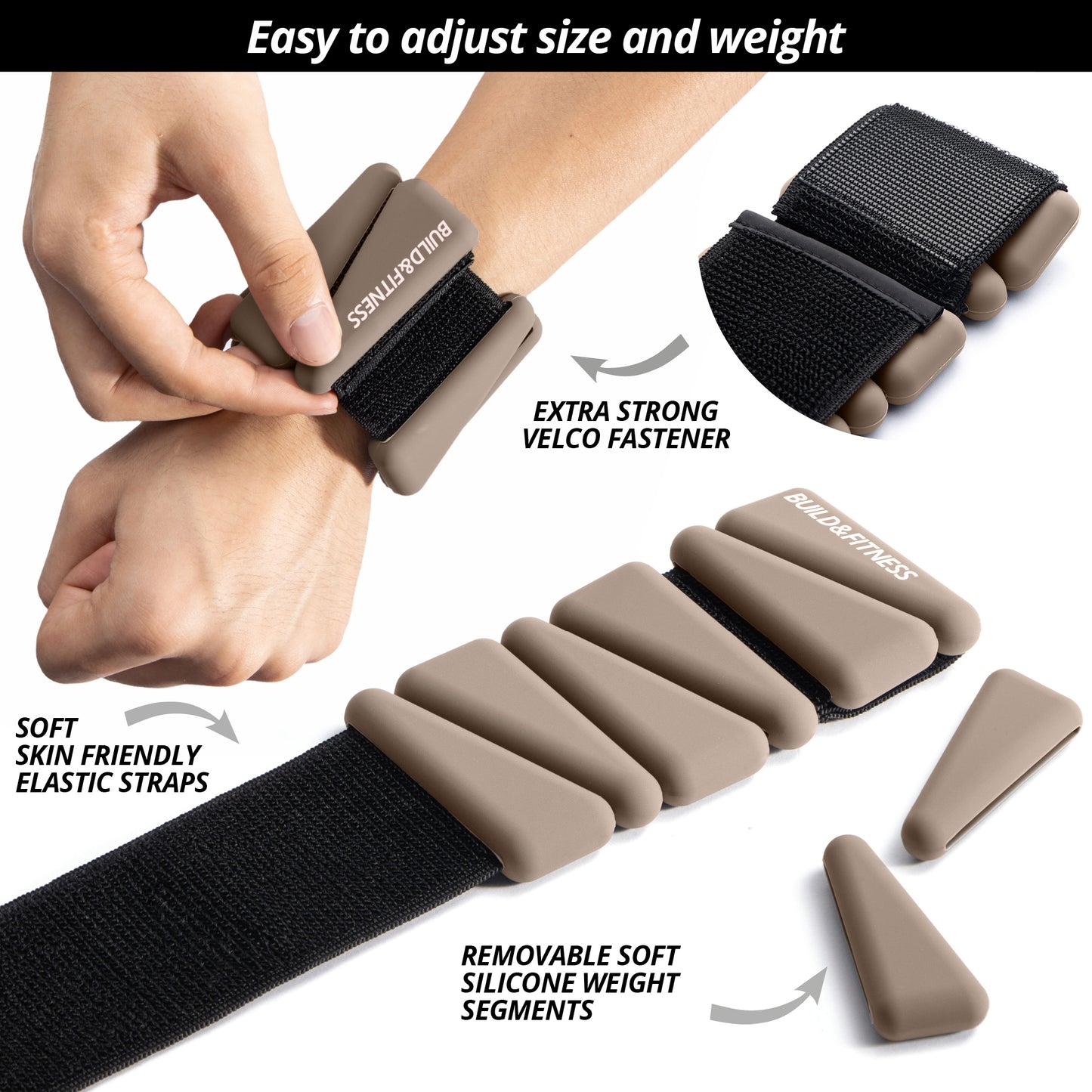 SECURE & COMFORTABLE - To fit, hold the weights against your body, wrap the elastic strap around your wrist / ankle, and firmly secure the soft velcro straps.