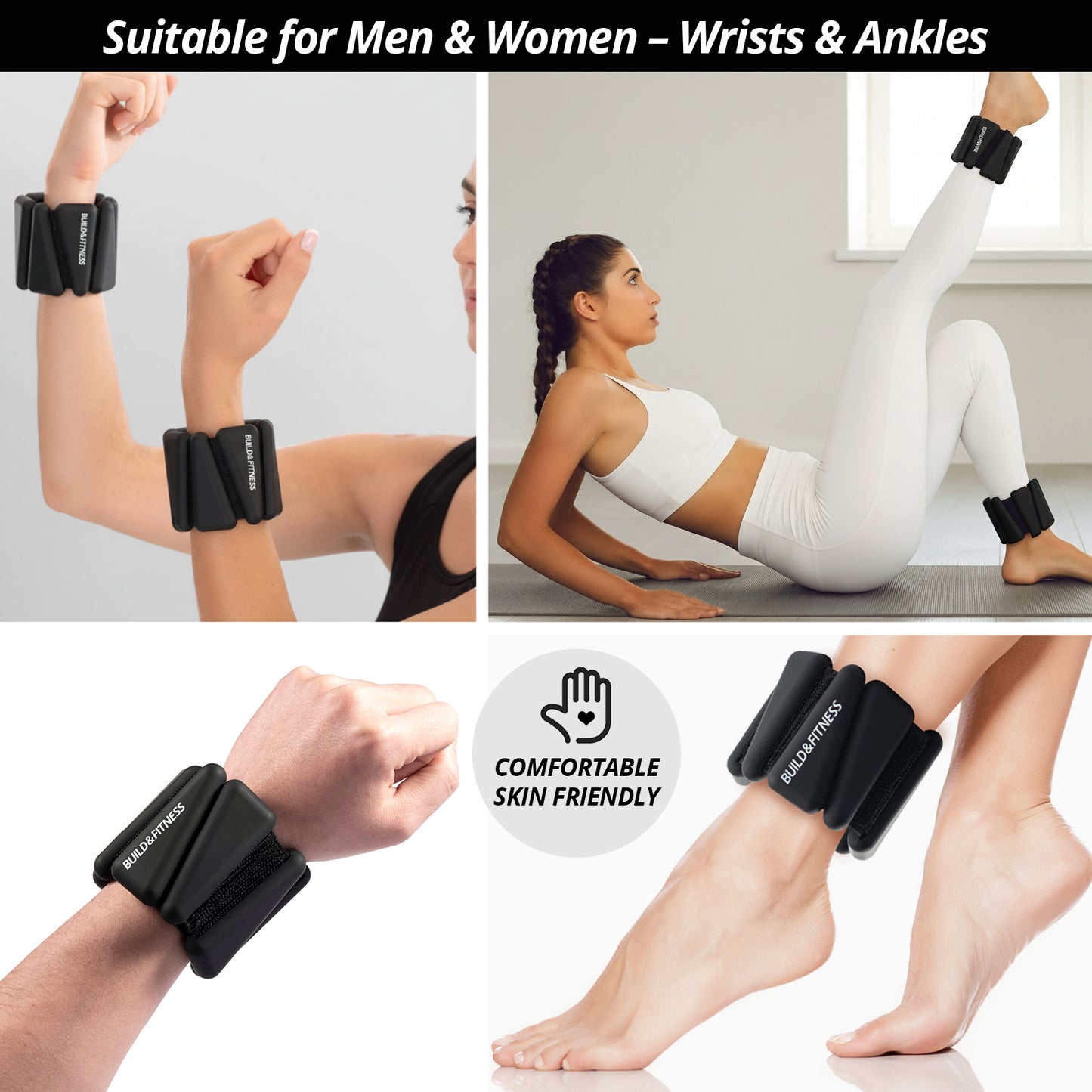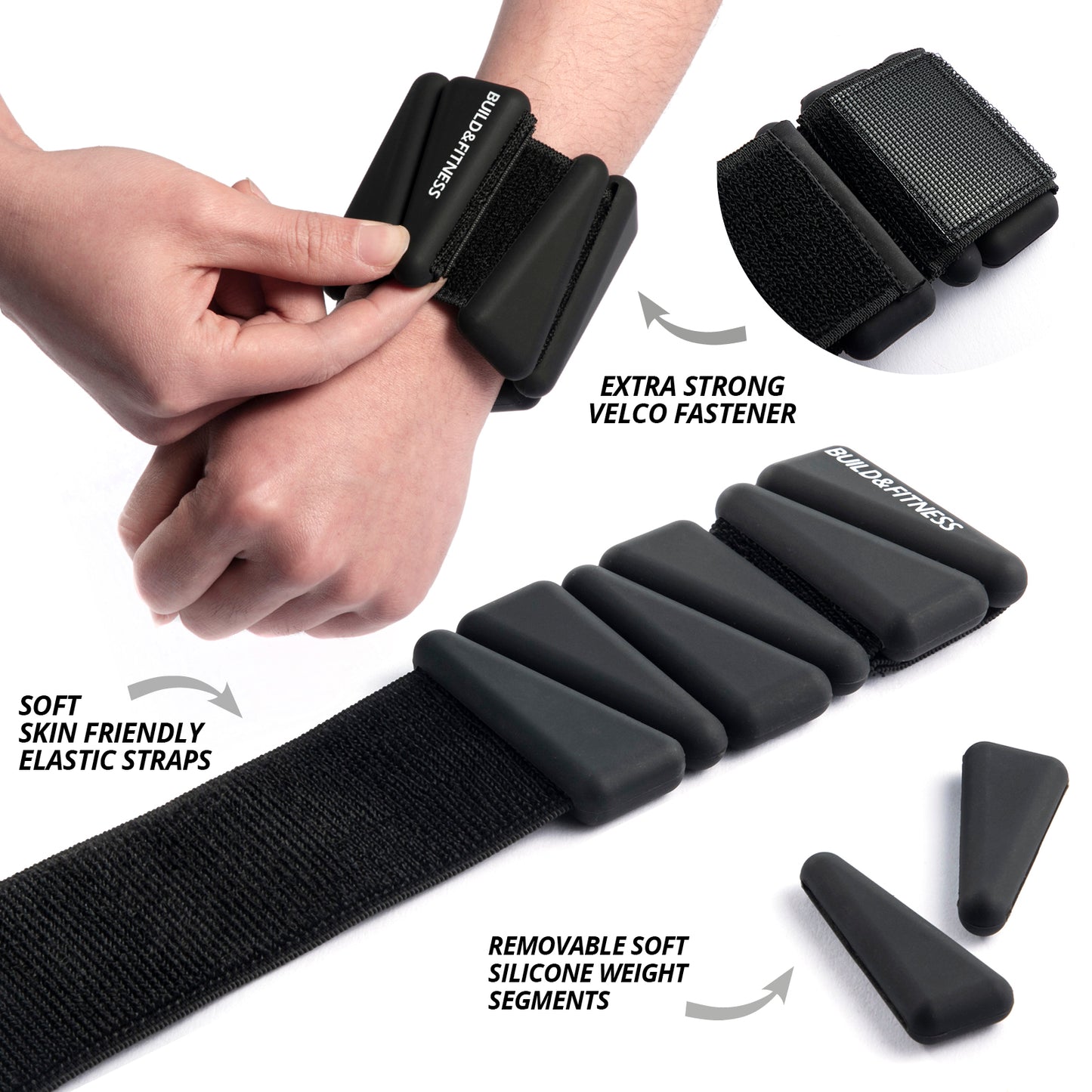 SECURE & COMFORTABLE - To fit, hold the weights against your body, wrap the elastic strap around your wrist / ankle, and firmly secure the soft velcro straps.